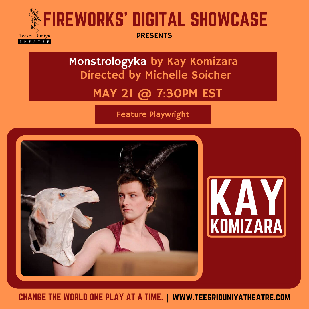 Kay Komizara is a Tiohtià:ke (Montreal) based, multidisciplinary artist, director, writer, and designer working across theatre and interactive media. Since 2013, she has developed original, collaborative works that examine power, sacrifice, and destiny through structured, research-driven creations.